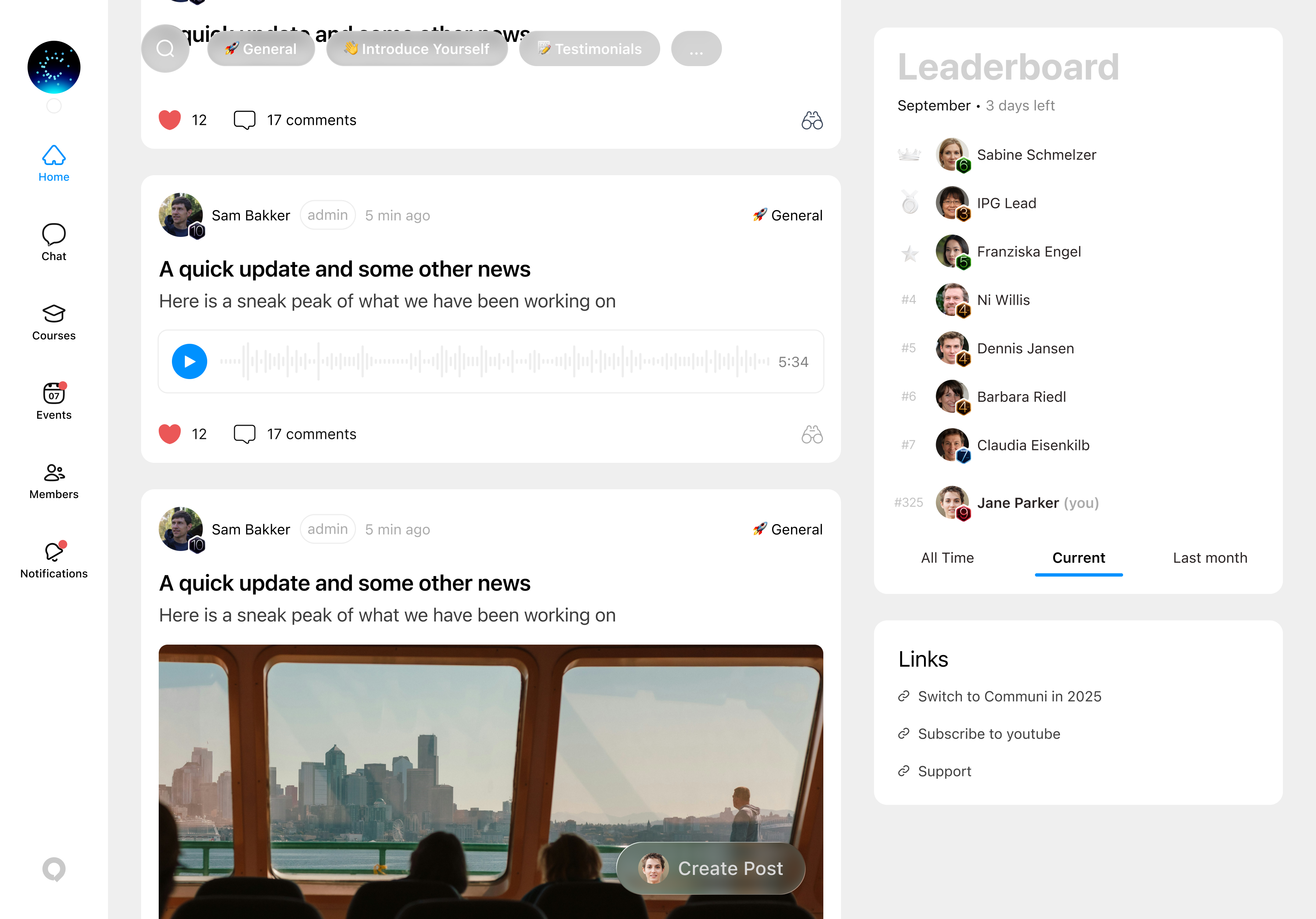 Объединяйте людей в гибких пространствах. Организуйте обсуждения, делитесь обновлениями и связывайте курсы или мероприятия — всё в одном месте.